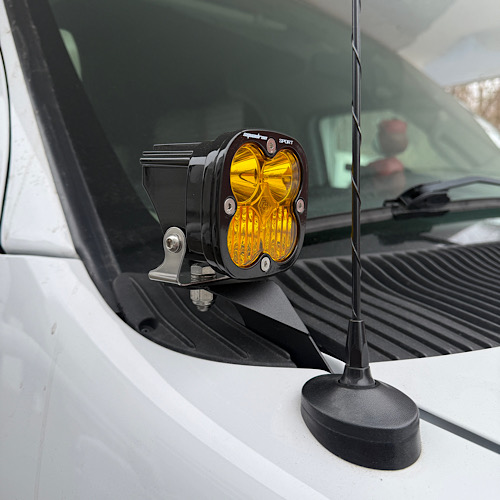 Ditch lights! These simple brackets use the hood pivot bolts to mount a pair of ditch lights to your e series van. Made from powder coated steel.